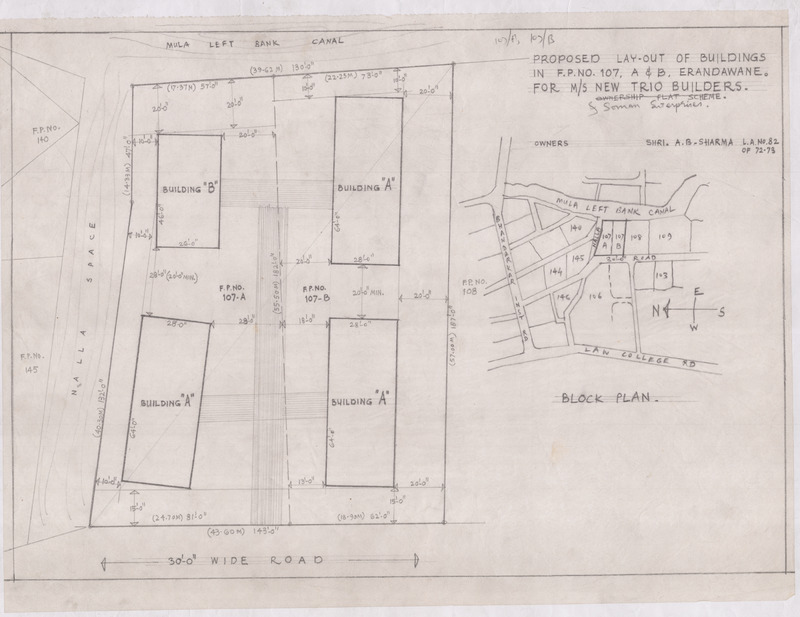 Proposed layout of buildings at F.P. no. 107/A & B Erandawane for M/s New Trio Builders.